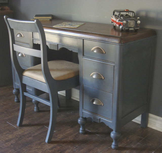 This was a drastic transformation. It was originally maple with orange trim and out-dated hardware. Now it is perfect for a little boy! |